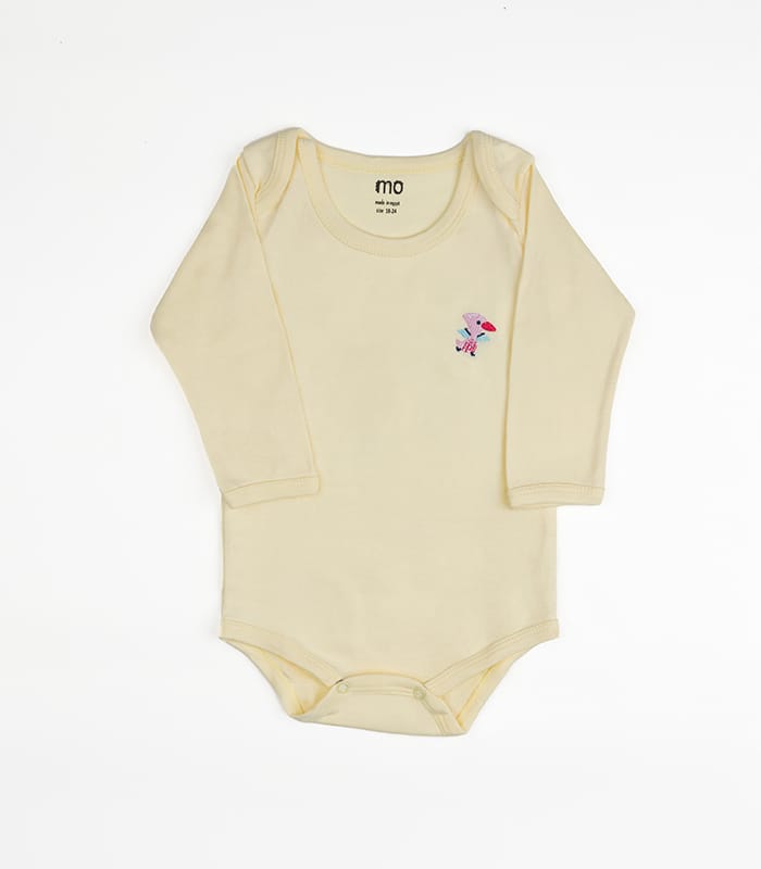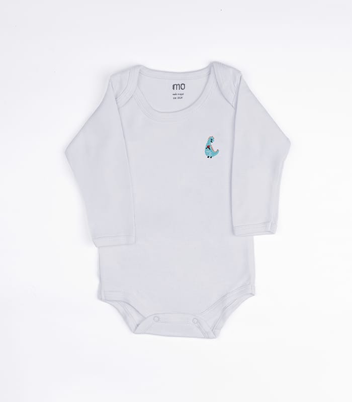 The Bodysuit Embroidered Long Sleeve Pack of 2 from MOkids combines soft cotton comfort with adorable dinosaur embroidery. Each color features a unique dinosaur stitched on the right chest, adding charm to your baby’s outfit in Egypt.