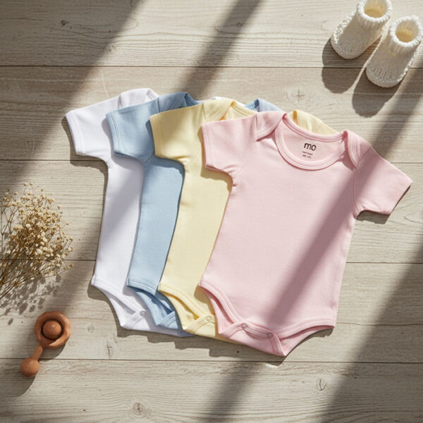 Bodysuit Short Sleeve Pack of 2 — soft, breathable essentials made for your baby’s daily comfort. Designed by MOkids to handle warm days and busy playtime in Egypt.