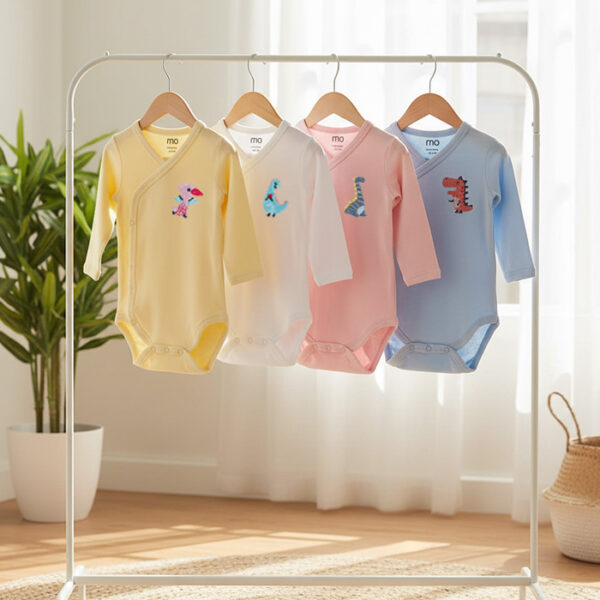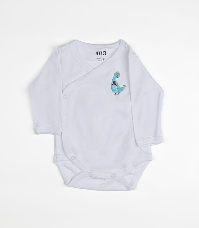 The Shaya Embroidered Long Sleeve Pack of 2 from MOkids combines soft fabric with adorable dinosaur embroidery. Each color features a unique dinosaur stitched on the right chest, adding charm to your baby’s outfit in Egypt.